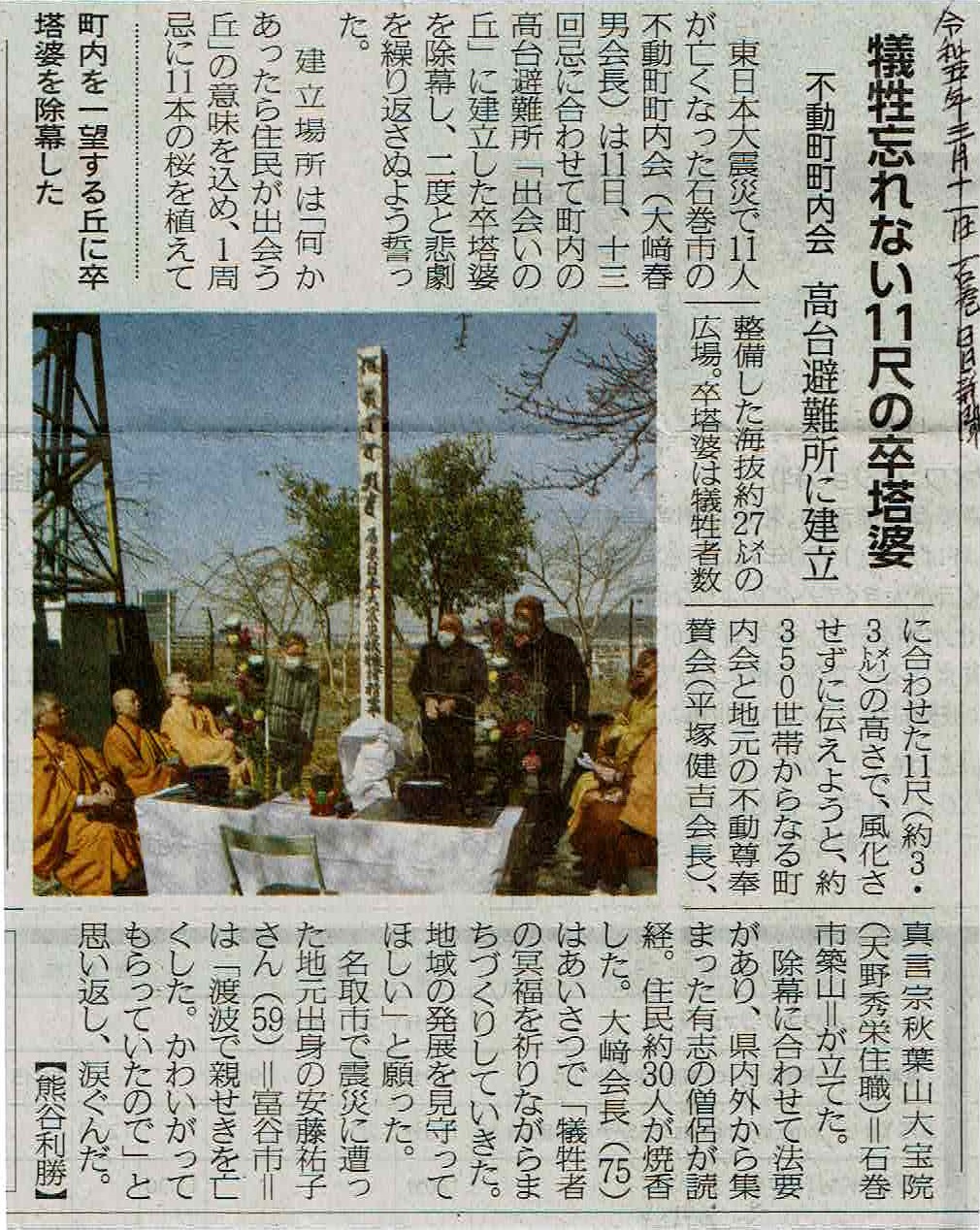 3月の震災慰霊法要の後に取り壊し、10月に完成する予定です。